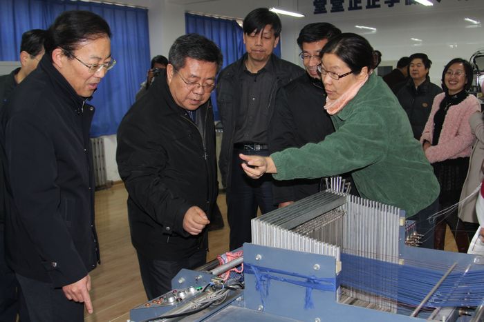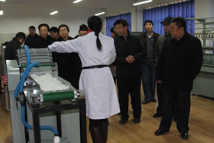 各位领导观摩化工与纺织学院数字纺纱实训室