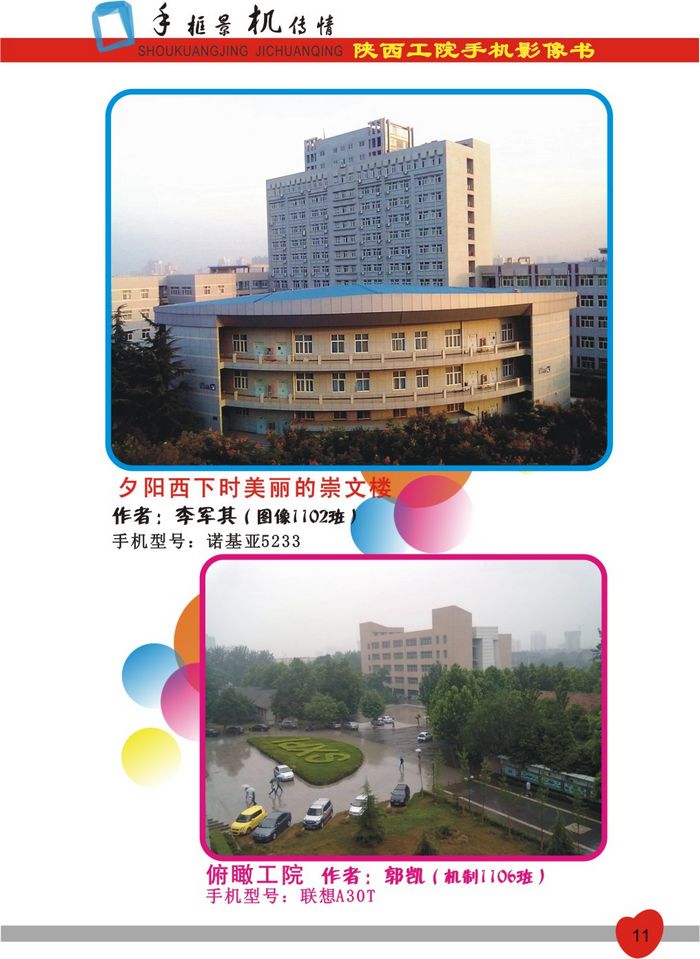 10月30日,我院首届“手框景•机传情——我眼中的陕西工院”校园手机影像展评活动落下帷幕,经过报名征集、评委初审、作品展出、学生投票等环节,最终评出一等奖2名,二等奖4名,三等奖6名。展评产生的优秀作品也已结集出版。