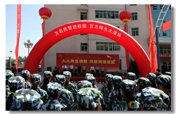9月14日,由我院主办,咸阳市公安消防大队渭城区支队协办的“人人关注消防,共建平安校园”消防演练在学院明德堂前广场隆重举行。副院长赵嘉骏、党委副书记、纪委书记刘永亮及市消防支队领导出席活动现场,刘永亮同志担任演练总指挥。学院安全稳定领导小组办公室成员、后勤保卫处全体人员及6000余名学生参加了演练活动。