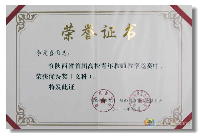 在庆祝第28个教师节之际,从陕西省首届高等学校青年教师教学竞赛上又传来喜讯,我院青年教师李爱喜(工商管理学院)、乔林(基础部)在与全省44所高校的87名青年教师的角逐中表现优异,分获文科组和工科组优秀奖。
