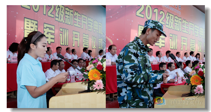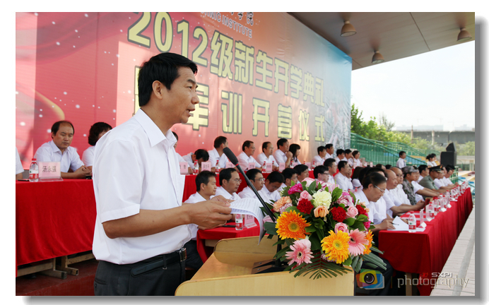 王天哲同志宣布军训编制及任命,在校生和新生代表先后发言。邓志辉同志宣布2012级新生军训开营。