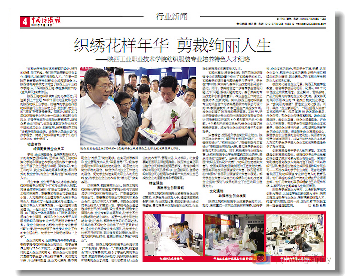 7月19日,《中国纺织报》以《织绣花样年华 剪裁绚丽人生》为题报道了我院纺织服装专业立足服务行业企业、培育高素质技能人才的特色育人纪实。