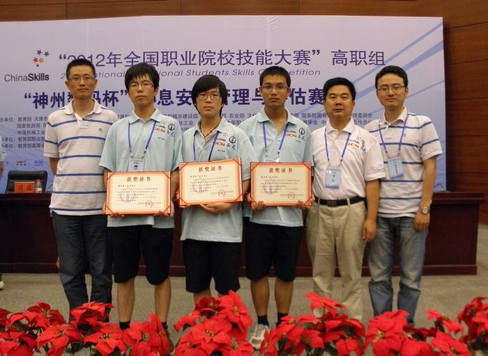 在信息安全管理与评估赛项中,信息工程学院网络1001班石璐、信管1001班杨攀和软件1101班薛萌同学组成的陕西省一队在全国参赛的68支代表队中冲出重围,荣获团体三等奖,成为该赛项设置以来陕西省首次获奖的参赛队。