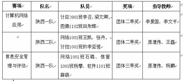 我院选手组成的信息安全管理与评估陕西一队荣获团体三等奖