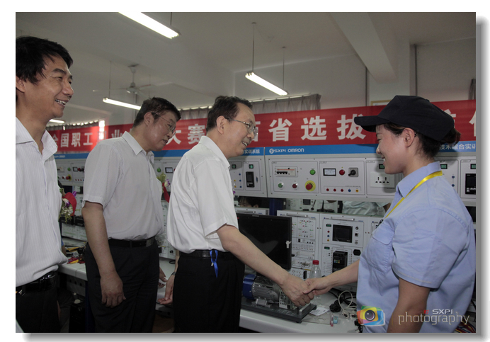 开幕式结束后,全体选手随即走进考场,进行紧张的实操考试。与会领导现场观摩了比赛并实地参观了我院发那科、欧姆龙实训中心等。