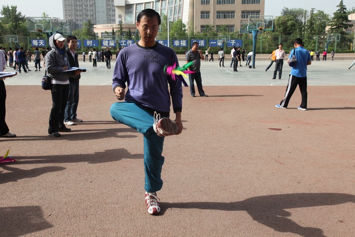 春风和煦旌旗飘,士气高涨鼓瑟鸣。在全体运动员、裁判员和工作人员的共同努力下,经过两个下午紧张激烈地角逐,我院2012年教职工春季运动会于4月27日圆满落幕。运动会以“我运动、我健康、我快乐”为主题,设有男女踢毽子、投篮、徒步3个个人项目和男女混合手足情、同舟共济、穿梭传球3个集体项目。全院23个分会共900余名教职工参加了比赛,500名教职工获得了不同名次和奖励。 所有比赛项目中,男女混合穿梭传球、男女混合手足情、男女混合同舟共济三项比赛对个人技巧、团队协作都有很高的要求。各分会不但派出了队员积极参赛,还组织了啦啦队和后勤队。现场竞争激烈、气氛热烈,加油声、助威声、喝彩声此起彼伏。男女徒步4000米预决赛实际参赛人数达到了72人,刷新了参赛人数的历史记录。整个比赛过程中所有运动员严守规则,无一人违规。广大教职工充分发挥潜力,切实达到了崇尚体育、重视健身、全员运动的目的。
