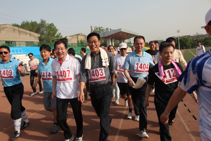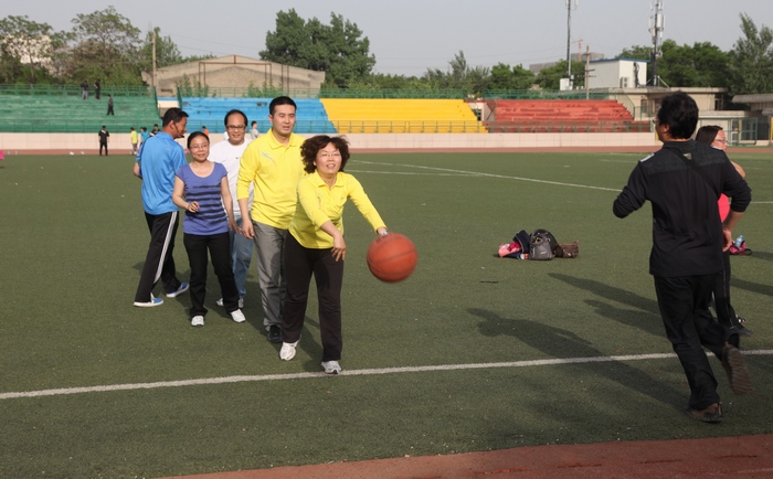 春风和煦旌旗飘,士气高涨鼓瑟鸣。在全体运动员、裁判员和工作人员的共同努力下,经过两个下午紧张激烈地角逐,我院2012年教职工春季运动会于4月27日圆满落幕。运动会以“我运动、我健康、我快乐”为主题,设有男女踢毽子、投篮、徒步3个个人项目和男女混合手足情、同舟共济、穿梭传球3个集体项目。全院23个分会共900余名教职工参加了比赛,500名教职工获得了不同名次和奖励。 所有比赛项目中,男女混合穿梭传球、男女混合手足情、男女混合同舟共济三项比赛对个人技巧、团队协作都有很高的要求。各分会不但派出了队员积极参赛,还组织了啦啦队和后勤队。现场竞争激烈、气氛热烈,加油声、助威声、喝彩声此起彼伏。男女徒步4000米预决赛实际参赛人数达到了72人,刷新了参赛人数的历史记录。整个比赛过程中所有运动员严守规则,无一人违规。广大教职工充分发挥潜力,切实达到了崇尚体育、重视健身、全员运动的目的。