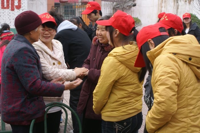 志愿者慰问敬老院的老人们