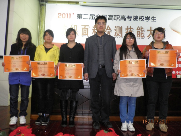 近日,由中国纺织服装教育学会、教育部高职高专纺织服装类专业教学指导委员会主办的“全国高职高专院校学生第二届纺织面料检测技能大赛”在常州纺织服装职业技术学院圆满结束。我院学生韩阿妮摘得本次比赛的三等奖,李彩丽、李莹、孙沛、张乐乐四位同学分别获得优秀奖。
