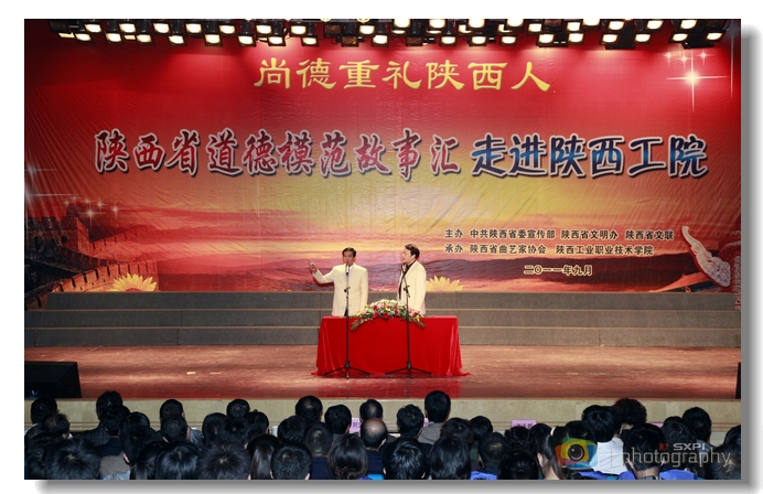 9月27日晚,“尚德重礼陕西人——陕西省道德模范故事汇”巡演活动走进我院,知名艺术家们用快板、相声、故事等曲艺形式为师生深情讲述了以陕西省“道德模范”真实事迹改编的一段段感人事迹,这也是我院创新理论学习形式,塑造健康校园文化的一次有益尝试。