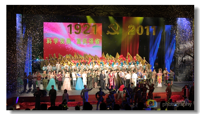 晚会旨在宣传中国共产党90年来取得的丰功伟绩,展现在中国共产党领导下,陕西省经济社会全面建设发展取得的伟大成就。演出形式多样,特色鲜明,既有红歌联唱、情景合唱、情景片断,也有对唱、独唱和歌舞,是一台由全国著名演艺明星和陕西文艺工作者及煤矿工人、石油工人、老区群众、党报记者等600余人共同创演的盛况空前的红色文艺歌舞晚会。我院党委副书记王天哲、学工部部长王超联、艺术教育中心主任付胜利应邀观看了演出。