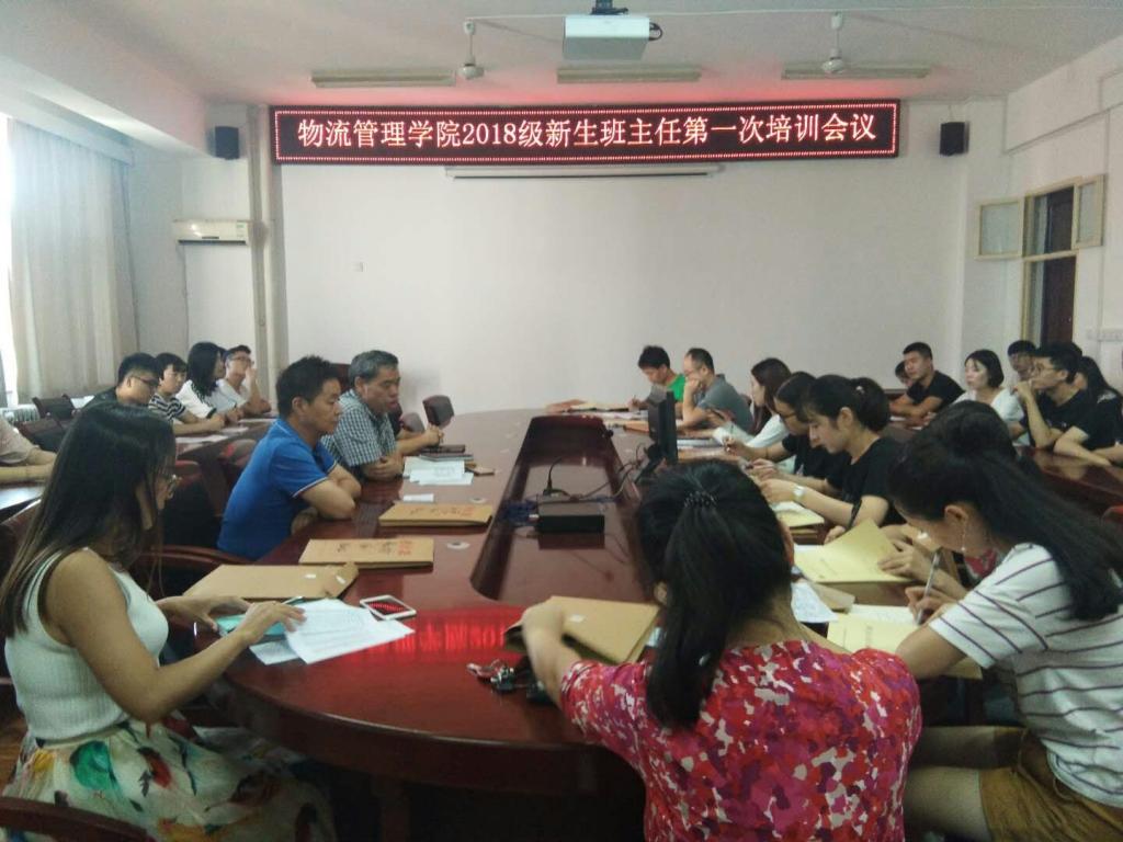9月3日下午,物流管理学院在崇文五楼501会议室召开2018级新生班主任培训会。物流学院党总支书记田昊、学工办主任王尚宏、2018级辅导员赵俊英、李朵朵以及2018级全体班主任、班主任助理、联系党员参加了本次培训会。