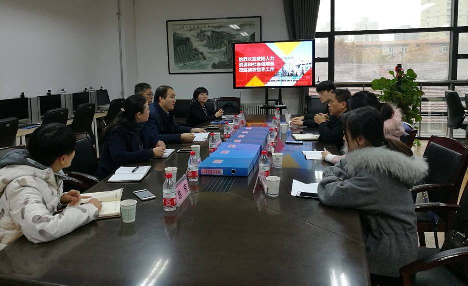 11月16日上午,咸阳市人社局就业科副科长刘党党一行4人对我院校园招聘活动开展情况进行检查,就业指导处处长卢文澈携同就业办全体教职工在精艺楼网络招聘室进行了座谈。