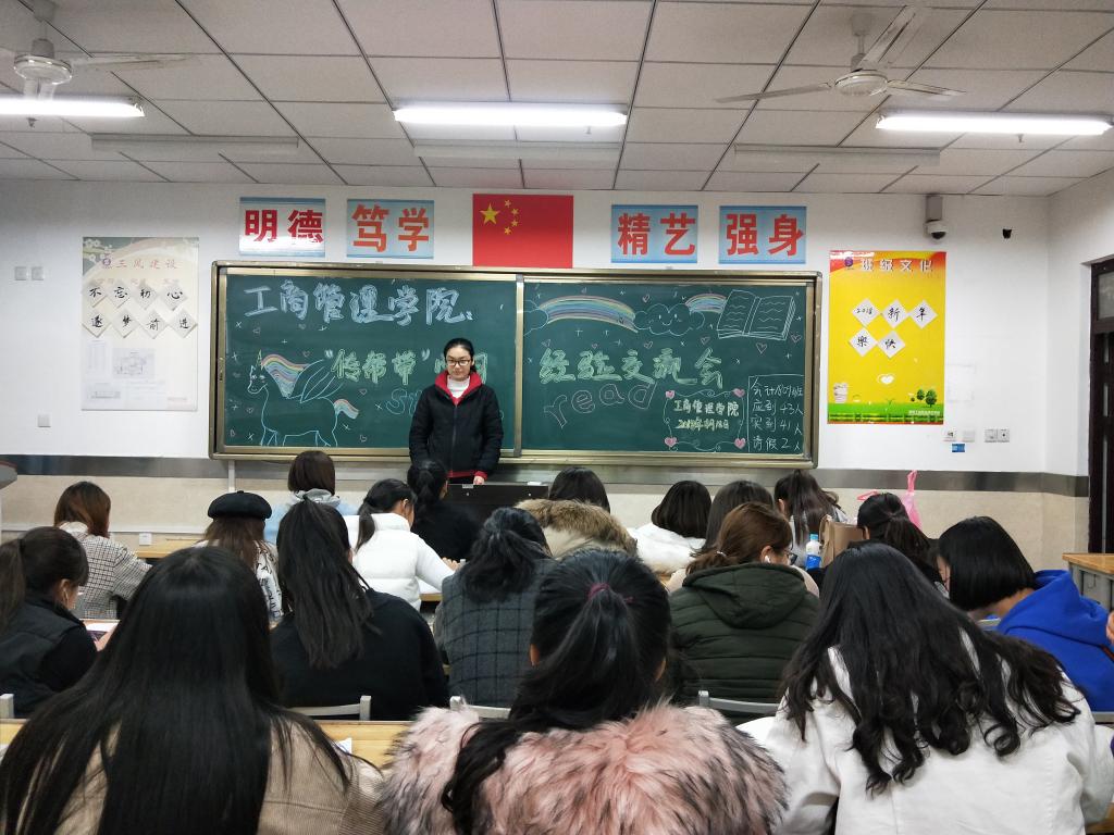 11月18日晚,工商管理学院2017级的36名优秀学生代表走进2018级各班晚自习教室,举办对口班级“传帮带”学习经验交流会,交流会由2018级各位班主任老师主持。