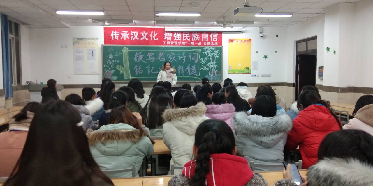 12月28日下午,工商管理学院于崇明楼805教室举办了主题为“续读名家诗词,铭记中华精髓”的诗词大赛。此次诗词大赛为工商管理学院“弘扬传统文化,增强民族自信”的一院一品系列活动之一。