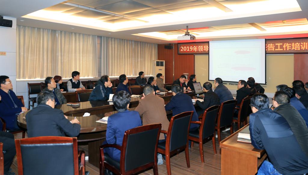 1月14日下午,我院在崇文南楼第一会议室召开2019年领导干部报告个人有关事项工作培训会,会议由学院党委委员、组织部部长贺天柱主持,学院内设管理机构副处级以上干部参会。