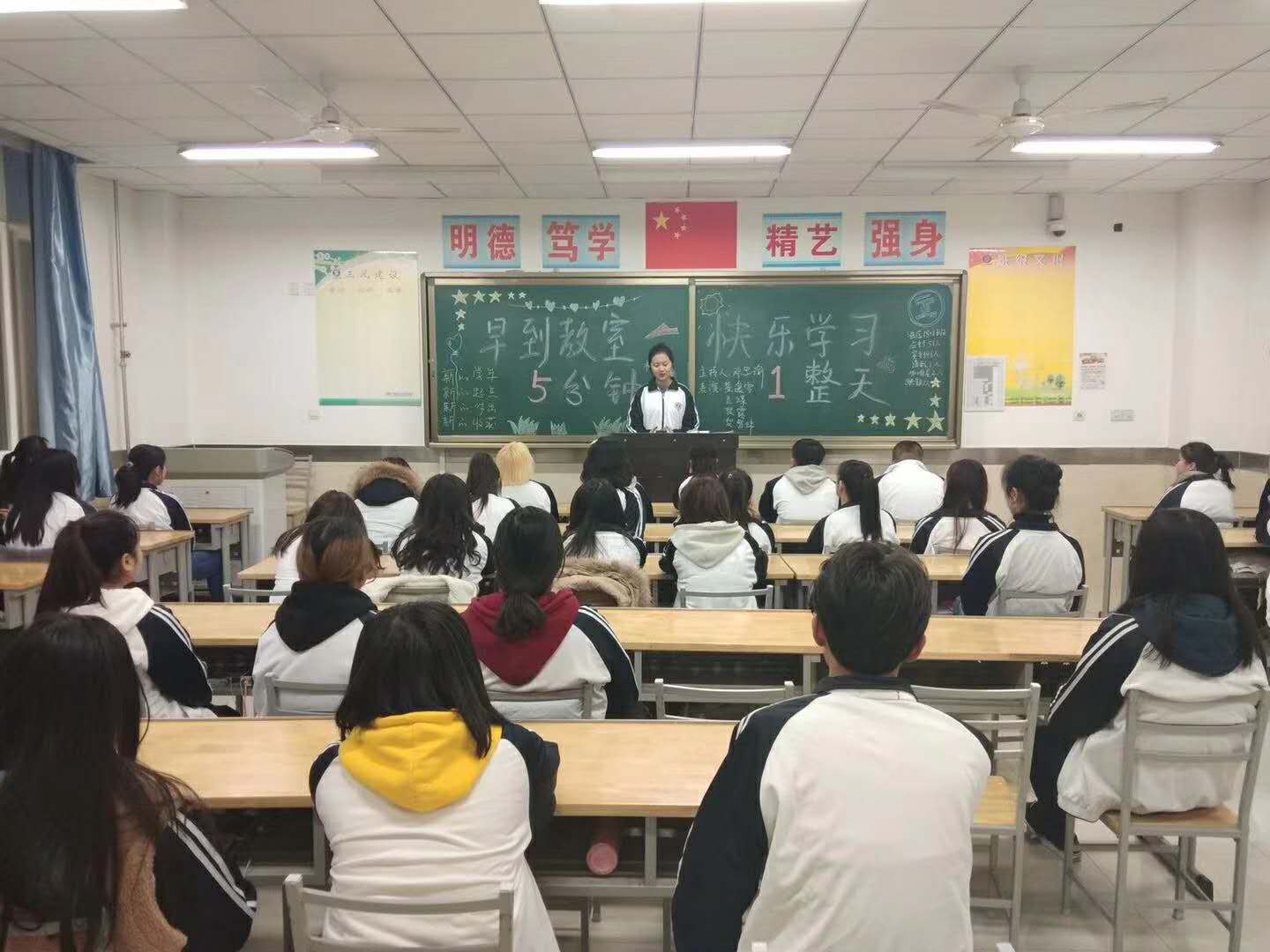 与此同时,2月25日晚自习期间,工商管理学院全部班级开展了“早到教室五分钟,快乐学习一整天”的主题班会教育活动。活动中同学们纷纷表态要养成早睡早起的生活习惯,每天早到教室五分钟,充分利用宝贵时间,提前预习功课,做好上课准备。