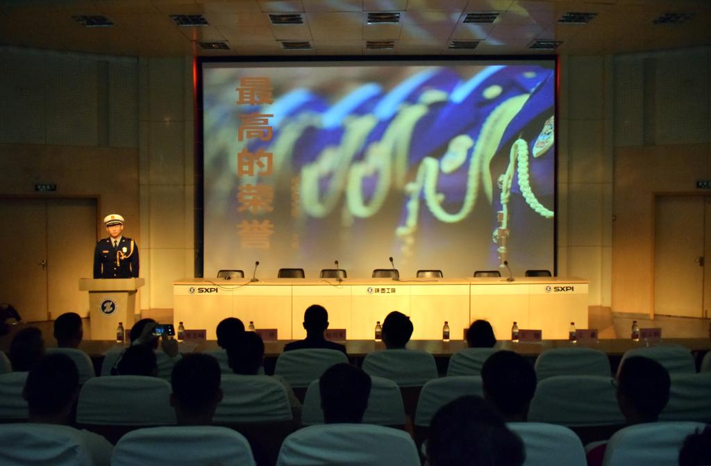 4月25日下午,由团委主办的纪念五四运动100周年“青春心向党,建功新时代”系列活动之“致敬逆行的青春”——消防事迹进校园分享会在学术会堂成功举行,咸阳市消防支队政治处副主任赵兴东,政治处组教科科长景璟出席活动,我院团委书记郝平、各二级学院团总支书记、辅导员老师及四百余名团员青年聆听了分享会。