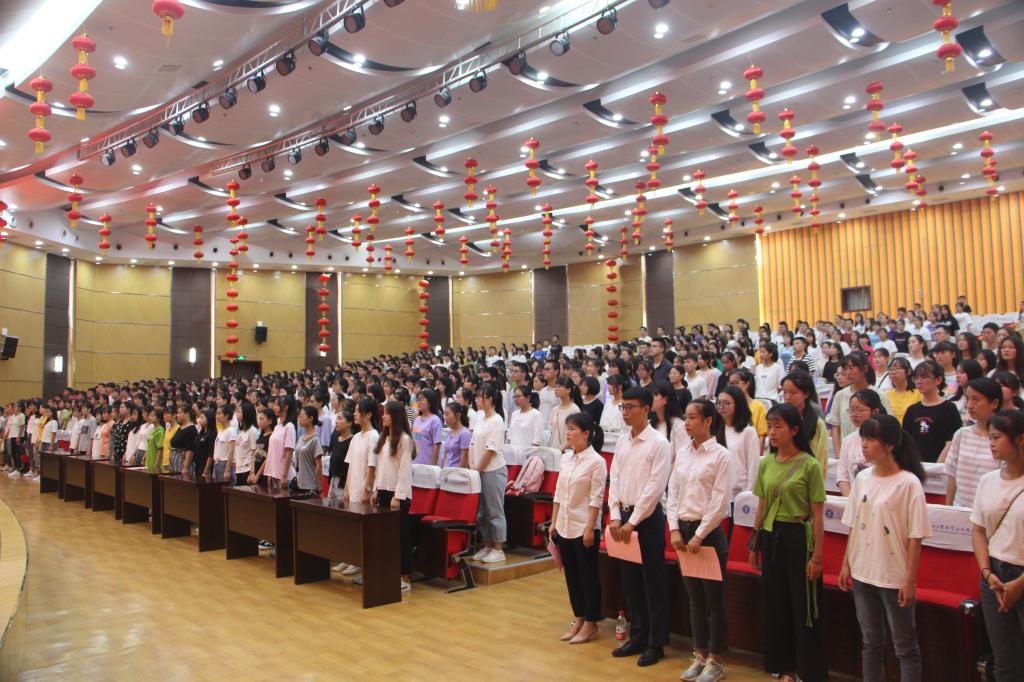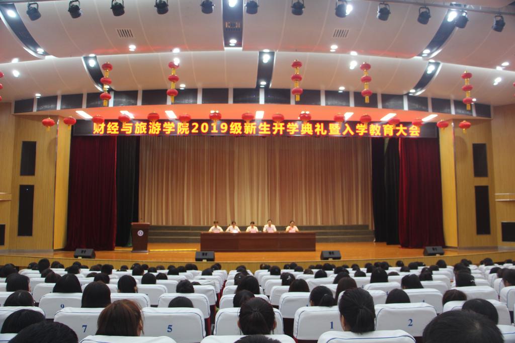 8月30日上午,财经与旅游学院在明德堂大礼堂举行2019级新生开学典礼暨入学教育大会,财经与旅游学院党总支书记孙继龙、院长吴姗娜、副院长赵利娟、学工办主任杜娟、实训中心主任张联朋以及2019级辅导员、班主任及780余名新生参加了会议,会议由党总支书记孙继龙主持。