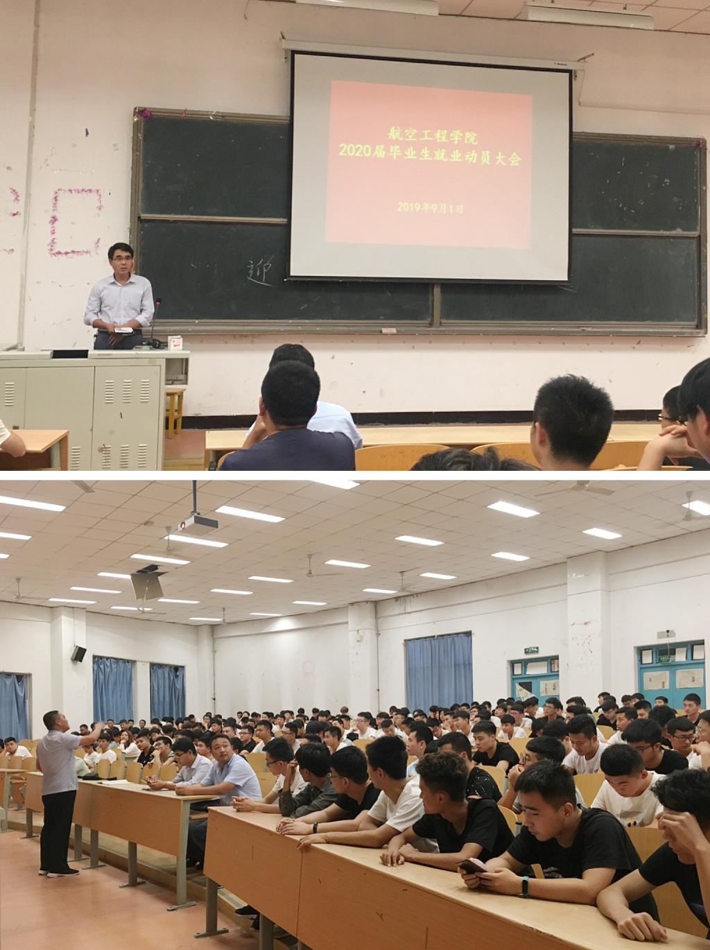 9月1日晚,航空工程学院2020届毕业生就业动员大会在崇文西楼302举行。航空工程学院党总支书记刘军旭,2017级辅导员、班主任及2017级全体学生参加了大会,会议由学工办主任王国柱主持。