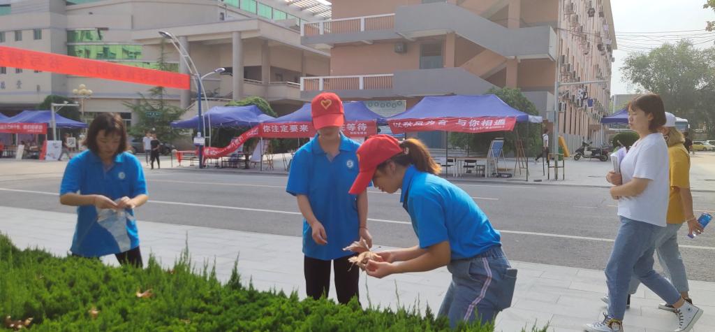 经过简单分工后,各班在指定区域内热火朝天地开始劳动,有的铲杂草、有的运杂物,有的清理绿化带内垃圾,有的擦除围栏灰尘,不放过任何死角。