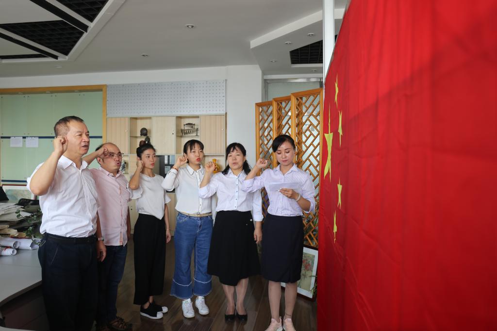 我宣誓:我是光荣的人民教师,忠诚党的教育事业,认真履行神圣职责……甘为人梯乐于奉献,薪火相传科教兴国,为人民教育事业和中华民族伟大复兴而不懈奋斗!嘹亮的誓词声回荡在崇文主楼艺术教育中心办公室,在领誓人的带领下,所有宣誓教师举起右拳,面向国旗庄严宣誓。