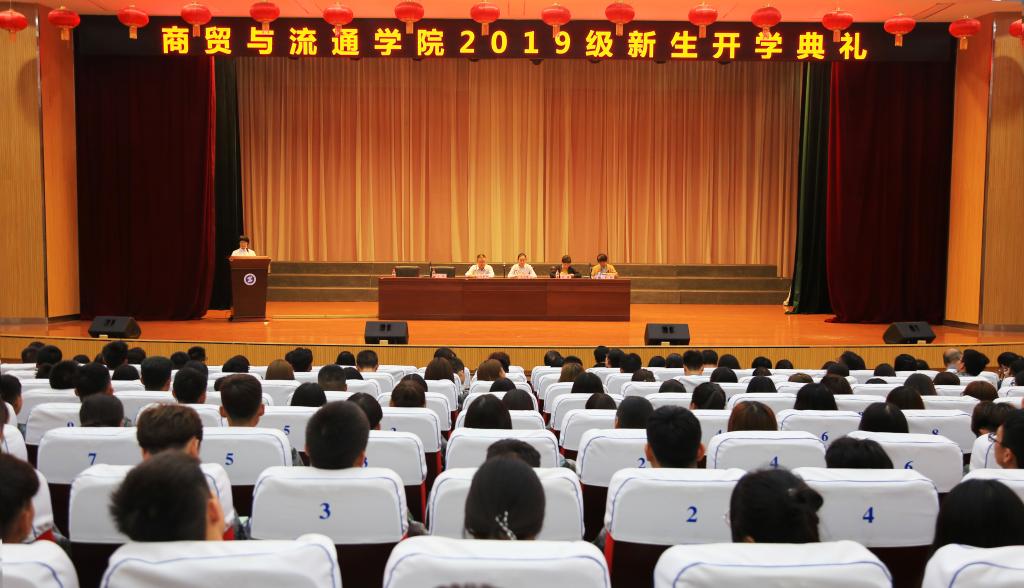 9月17日下午,商贸与流通学院2019级新生开学典礼暨入学教育大会在明德堂举行。教务处副处长舒蕾、学生处副处长耿丽受邀出席开学典礼。商贸与流通学院党总支书记陈昊平、院长王永莲及全体教师、辅导员和2019级新生班主任参加了开学典礼。典礼由党总支副书记王艳主持。