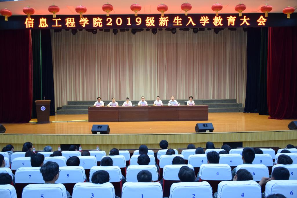 9月24日下午,信息工程学院2019级第一场新生入学教育大会在明德堂举行,信息工程学院院长张磊、党总支书记闫军以及学生处、教务处相关同志与800余名新生参加了典礼,会议由党总支书记闫军主持。