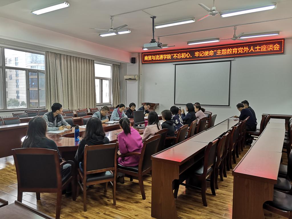 10月23日下午,商贸与流通学院在崇文楼五层会议室召开“不忘初心、牢记使命”主题教育党外教师座谈会。党总支委员和18名党外教师参加会议,会议由党总支副书记王艳主持。