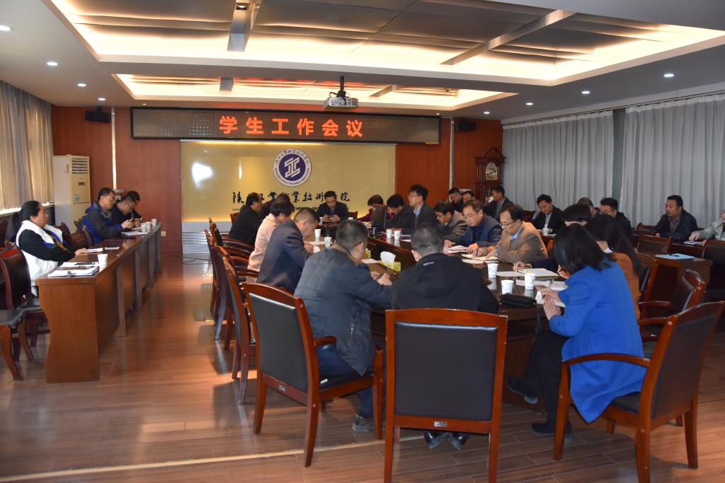 11月19日下午,学生工作会议在崇文楼九楼第一会议室召开。学生处、团委、各二级学院副科级以上干部30余人参加了会议,会议由学生处长郝军主持。
