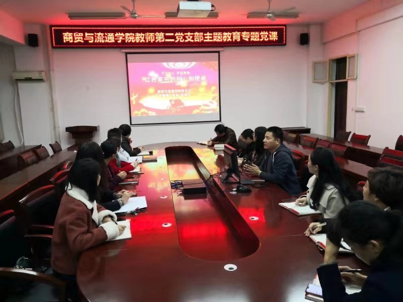 为深入推进“不忘初心、牢记使命”主题教育,11月21日下午,商贸与流通学院教师第二党支部在崇文楼五楼会议室开展“支部书记讲党课”主题活动,教师第二党支部全体党员参加了此次活动。