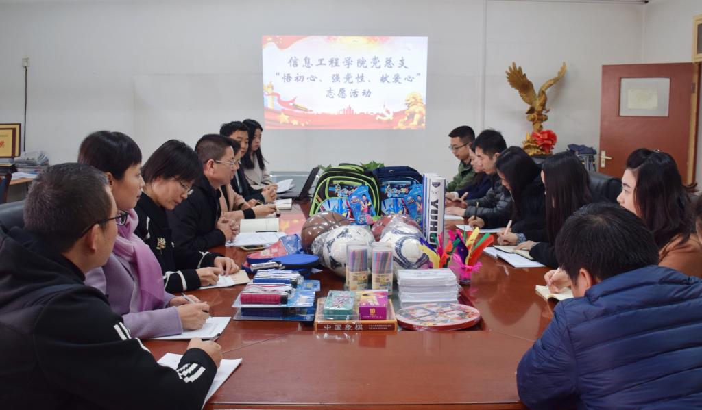 为持续推进“不忘初心、牢记使命”主题教育,进一步提高党员党性修养,增强广大党员的宗旨意识、奉献意识,11月21日,信息工程学院党总支开展“悟初心 强党性 献爱心”主题教育。