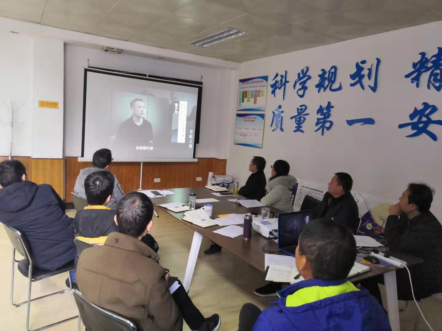 11月25日,基建干部职工集体观看警示教育片《贪欲之祸》。该片以陕西省扶贫办党组原副书记、副主任,咸阳市秦都区委原书记陈肖坪违纪违法事件为案例,讲述了陈肖坪贪财、贪色、贪权,私欲膨胀、利令智昏、最终锒铛入狱的沉痛教训。
