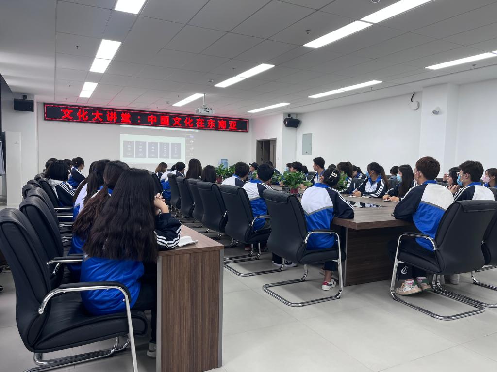 讲座分为两个部分:第一部分介绍了中国与东南亚各国的历史文化渊源,列举了越南、泰国、新加坡、马来西亚、菲律宾等国家历史上接受中国文化影响的具体情况;第二部分介绍了中国文学在东南亚的传播,重点讲解了古典小说《三国演义》在泰国的传播盛况以及马华新文学的诞生与发展。