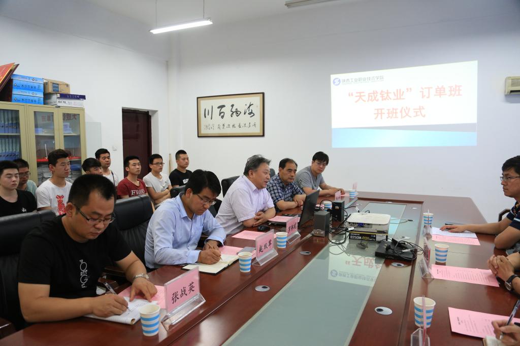 会上,材料学院院长罗怀晓向车伟总经理一行的到来表示欢迎,向加入订单班的同学们表示祝贺;希望入选订单班的同学们严格要求自己,在校企共同培养下,不断提高自己的技能水平和职业素养,快速融入企业,争取成为企业的优秀员工。咸阳天成钛业有限公司总经理车伟感谢学院对订单班的大力支持,向入选订单班的同学表示祝贺,并期待同学们再接再厉、勇于攀登、不断克服各种困难,早日成为公司的中坚人才。