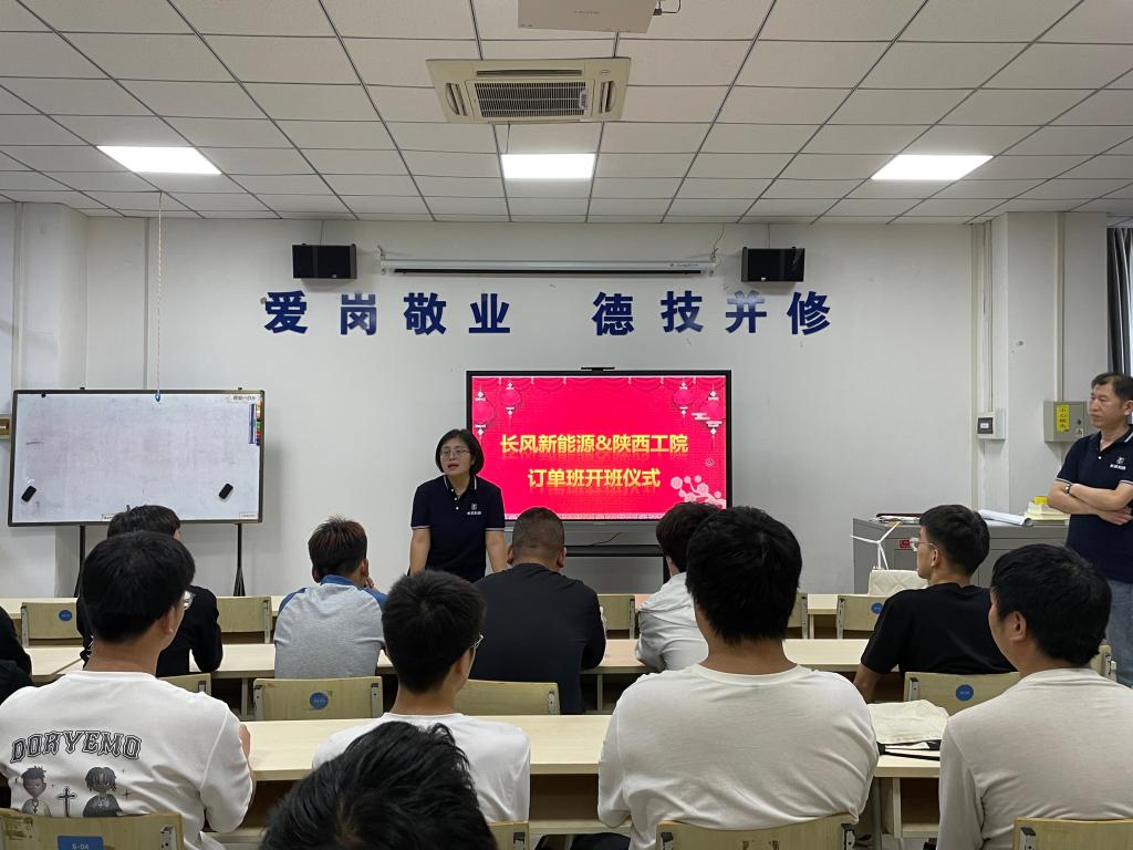 6月29日下午,电气学院与陕西长风新能源科技有限公司组建的“长风新能源”订单班在行知楼欧姆龙102教室举行开班仪式。长风新能源人事主管张佳丽及员工代表,电气学院24届毕业年级辅导员,订单班班主任及订单班全体学员参加了仪式。