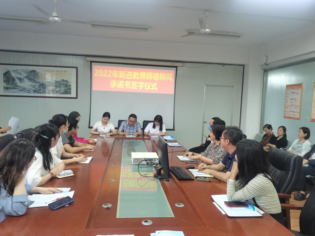 最后,2022年三位新进教师签订《师德师风承诺书》,一致表示要塑造良好的教师形象,更好地履行教师职责,做一名受学生尊敬、让家长满意、获社会好评的人民教师。