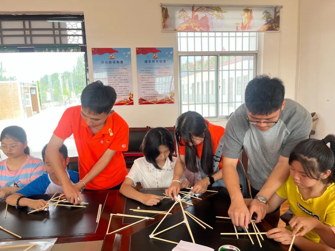随着活动的深入开展,孩子们的学习热情更加高涨,实践团成员庹旭辉带领孩子们开始了搭“桥”之旅。庹旭辉搭建了一座受力而不断的“桥”,并向孩子们解释了其中原因,孩子们深受启发,纷纷动手搭“桥”。活动中,有人一次成功,有人屡屡尝试,但是大家探索知识、热爱科学的热情不减,孩子们纷纷化身“小小工程师”,用科学筑梦,实现了他们人生第一次“动手造大桥”的科学梦想!这次搭“桥”之旅,孩子们勇于实践,合作互助,追求创新,不仅培养了综合运用知识的能力、动手能力、创新能力,而且提高了团队协作能力,增强了团队凝聚力。