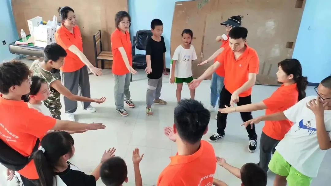 在游戏环节中,第一个游戏是“木头人”,选出两名成员负责念出“123木头人”的口令,其他成员从同一起点出发,在口令念出过程中奔向对面,口令停止时必须立刻站在原地不动,动则出局,最先抵达对面的人获胜,游戏还设有奖品,孩子们玩的不亦乐乎。