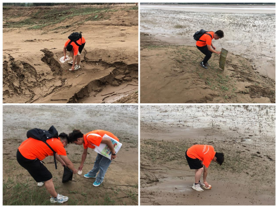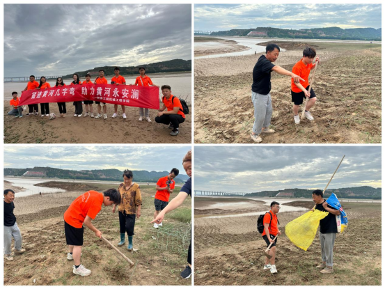 博物馆参观结束后,实践团为了践行“绿水青山就是金山银山”的理念,来到了三门峡湖滨区黄河防浪工程,首先开展了“母亲河净滩行动”,在黄河边捡拾垃圾,保护河滩环境。展现了团结协作的团队精神,也传播了正能量。由于黄河边泥沙堆积,地质松散,较为危险的地方无法接近,同学们看着远处泥潭上的白色垃圾纷纷心痛不已,更加坚定了今后要严以律己,保护环境,并且用自身的行动带动身边的人共同保护母亲河。