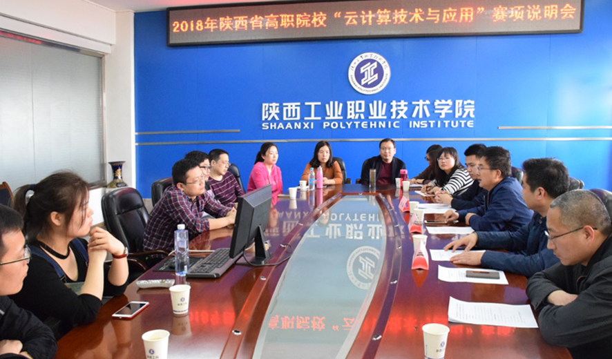 3月15日下午,2018年陕西省职业院校技能竞赛“云计算技术与应用”说明会在我院举行,南京第五十五所技术开发有限公司陕西区经理于海涛、工程师郭瑞,信息学院院长何玉辉与来自全省的十余所高职院校的近20余名领队和指导教师参会,赛项说明会由信息学院副院长殷锋社主持。