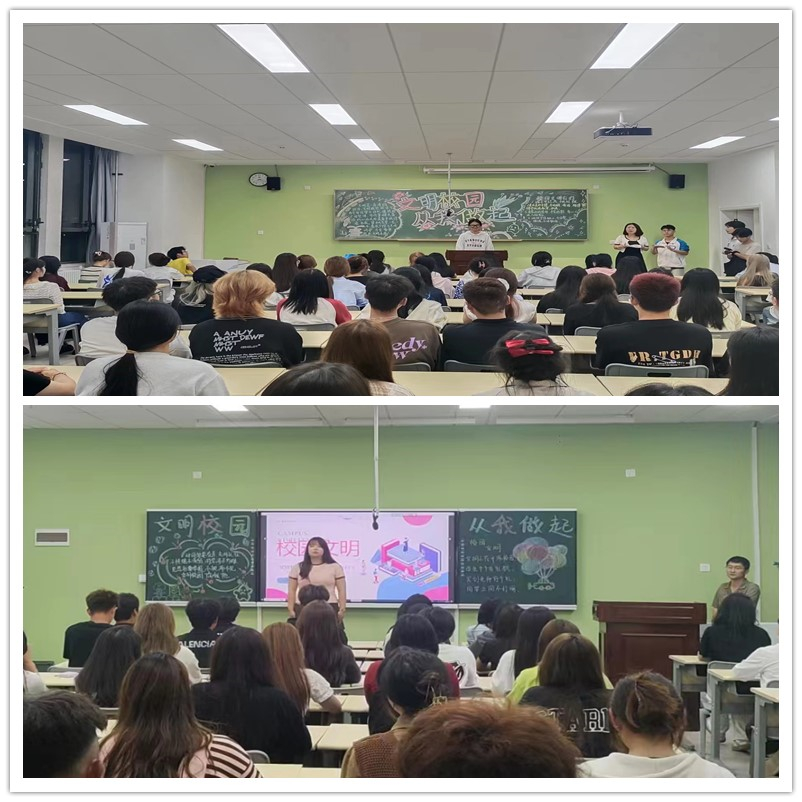 为了进一步帮助大学生牢固树立社会主义核心价值观,自觉弘扬践行社会主义新风尚,努力提高大学生的文明素养,积极创建文明班级、文明宿舍,提高学风建设水平,9月18日晚,学生处组织指导各二级学院召开了“文明校园,从我做起”主题班会。