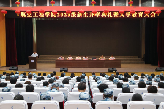 2023级全体新生在庄严的国歌声中再次坚定理想信念,开启美好的大学生活。航空工程学院院长李晓鹏对同学们的到来表示热烈的欢迎,介绍了学院的发展历史,专业情况,希望学生们在新时代成就梦想,迎接人生的新起点。学生处副处长耿丽希望同学们尽快适应大学生活,做好角色转变的心理适应,积极参加学校各项活动,丰富课余生活。教务处老师徐军纪介绍了有关学籍、学分预警方面的具体内容,希望同学们珍惜时间、努力学习、提升专业素养,为未来就业打好基础。在校生代表数控2201班王一川鼓励学弟学妹们不负韶华,只争朝夕。工业设计2301班郭聪敏代表全体新生表态发言,将尽快适应大学生活,开启人生的新篇章。教师代表、航空学院梁晓哲老师勉励新时代青年,勇担使命,提升本领,报效祖国。航空学院党总支书记刘军旭对2023级新生寄予了殷切期待与希望,并要求他们在今后的大学学习生活中严格要求自己,不断努力,在大学中找到自己的人生价值。