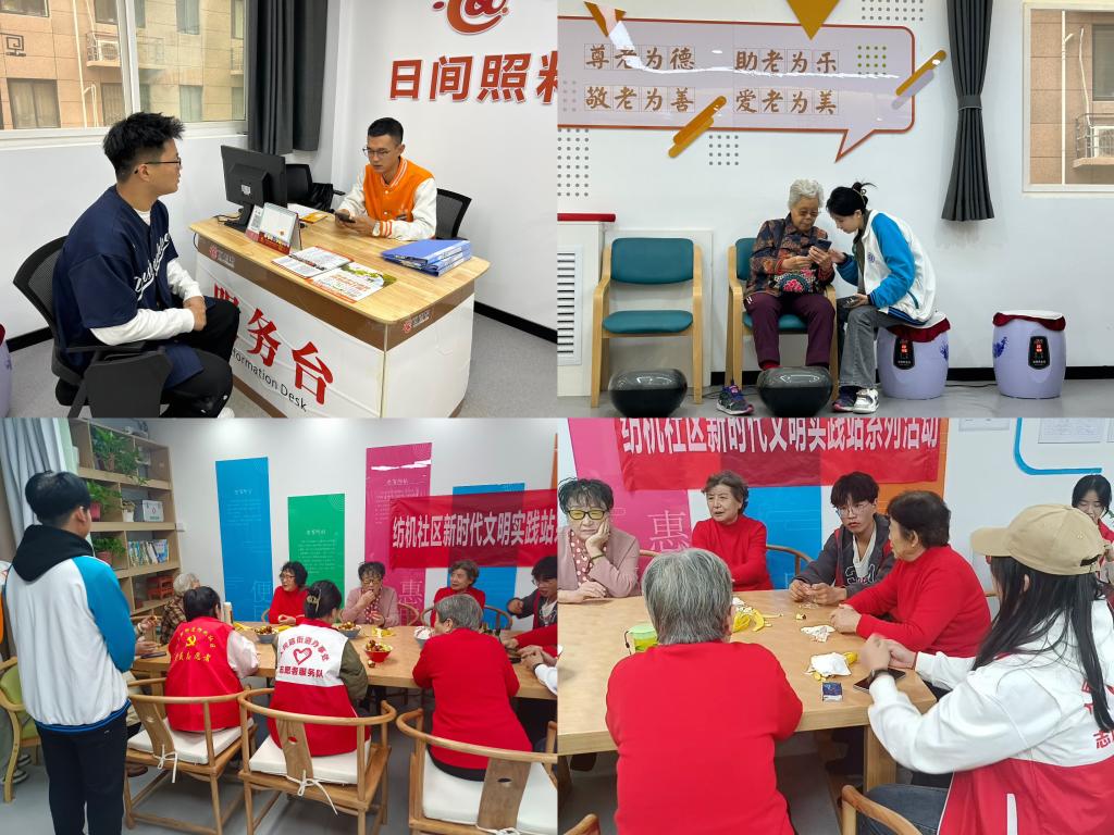 “敬老月”活动期间,在我院学生将“为老精神”落于实处,主动关心身边的老年人、自己的长辈,通过通电话、利用周末时间为家中老人做力所能及的事等方法,做出了一些具体的实事,让身边老人感受到节日的温暖及日常的关爱,学生自己也从中领会到了付出的快乐。活动期间,土木学院团总支晨曦志愿部、宣传部学生代表和部门成员分别前往“咸阳青葵到家养老有限公司”“纺机社区日间照料中心”,举办了“爱助夕阳·温暖传递”为主题的为老志愿活动。活动当天,志愿者们前往社区内的老年活动中心进行走访,与老年人亲切交流,倾听他们的心声;志愿者们帮助老年人打扫卫生、搬椅子、剥水果等,为他们解决一些生活上的问题,从日常生活中的小事、细节出发,让这些老年群体感受到来自各方的关心与温暖;志愿者们与老人们深入互动,聊天、陪伴,让老人们感受到被关心和珍视。通过开展精彩、丰富的文娱表演活动,以唱歌、舞蹈、朗诵、相声等文艺形式,展现青年一代的朝气与活力。志愿者们陪老人打麻将、下象棋,增强老年人的社交活动能力,为他们带去了欢声笑语。此外,志愿者准备了一些水果、坚果等爱心食品,为老人们亲手献上茶水,为老人们送去秋日的温暖与祝福。