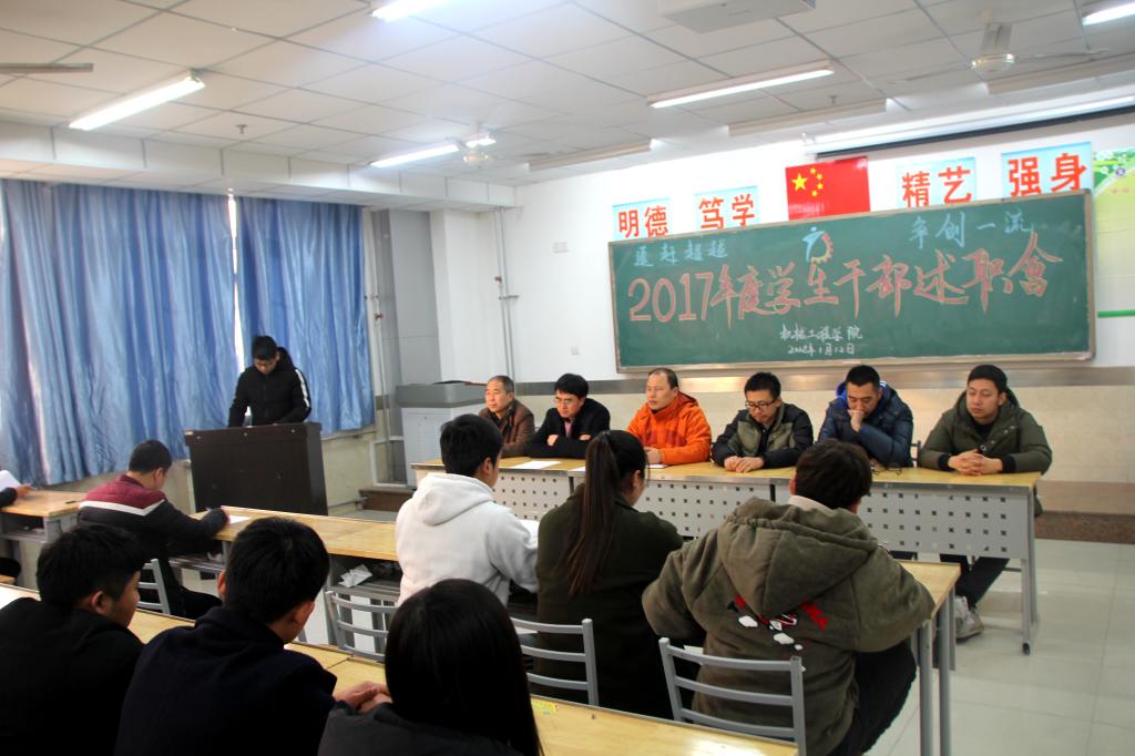 为展现学生干部积极向上的精神风貌,促进学生工作顺利开展,1月12日,机械工程学院组织召开学生干部述职会。团总支书记、学工办主任徐军纪,全体辅导员,学生团总支、学生会及各班级学生干部参加了会议。