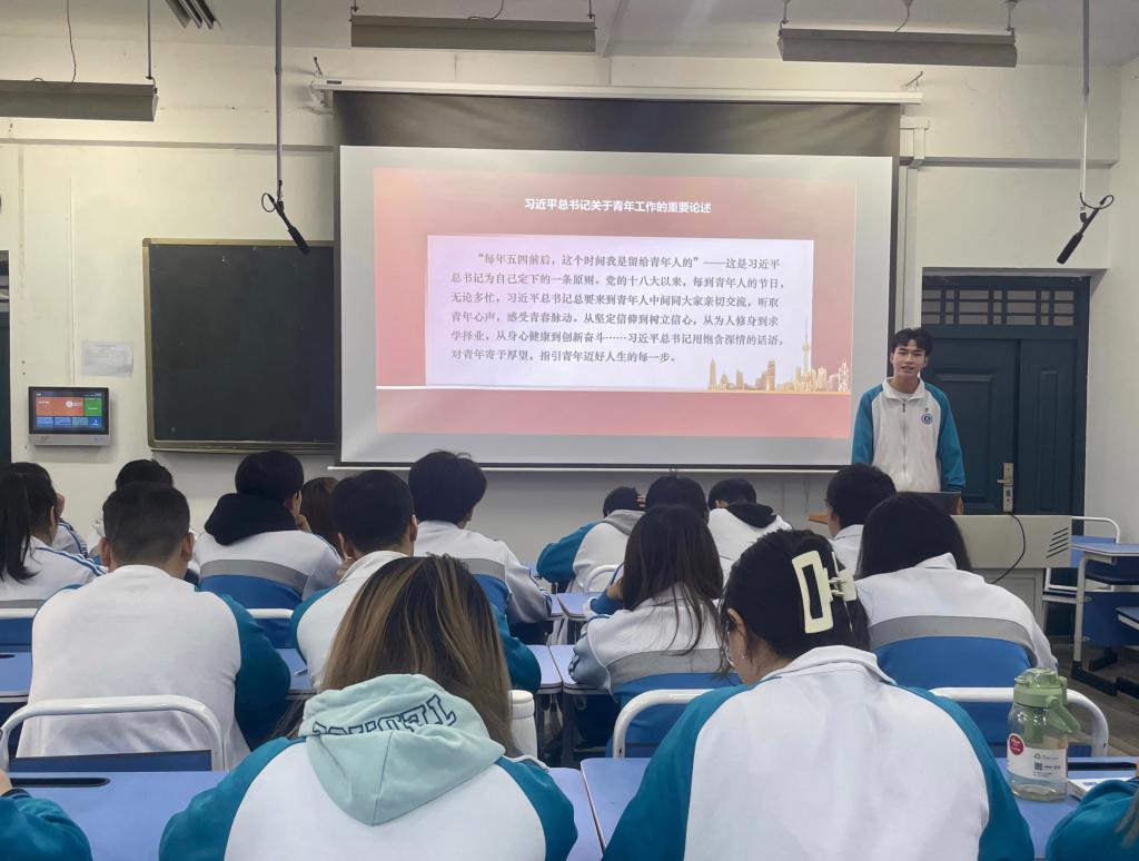 随后,团总支副书记庹旭辉以PPT讲学的方式带领全体人员深入学习贯彻习近平新时代中国特色社会主义思想的相关内容,强化理论学习,深刻领悟习近平新时代中国特色社会主义思想的核心要义、精神实质、丰富内涵及实践要求。他强调:我们作为广大青年,要深刻理解中国特色社会主义道路的历史必然性、科学真理性和现实优越性,不断增强“四个意识”、坚定“四个自信”,始终保持对党的全面领导的政治认同、思想认同和情感认同;要在坚定不移用习近平新时代中国特色社会主义思想武装头脑、指导实践、推动工作上见行动、求实效;要时刻牢记党的教诲,坚毅铿锵,砥砺前行,立志民族复兴,勇做走在时代前列的奋进者、开拓者、奉献者,为实现“两个一百年”奋斗目标贡献青春力量。