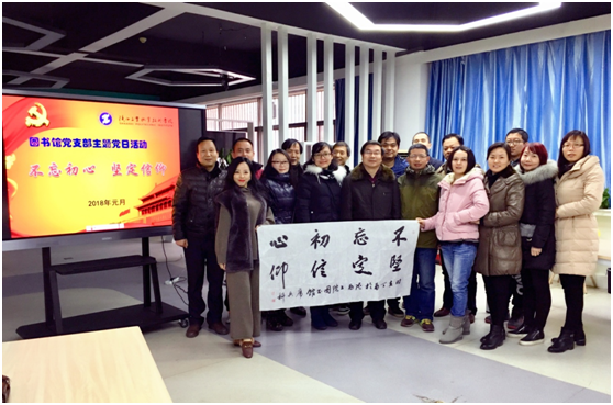 1月3日下午,教务党总支图书馆党支部开展“不忘初心,坚定信仰”主题党日活动,教务党总支书记、图书馆馆长南欢与图书馆党支部全体党员共同参加了本次学习。