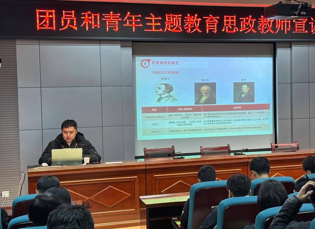 12月6日下午,机械工程学院团总支邀请我校马克思主义学院实训中心主任陈杜昊老师开展以“追寻思想源头 坚定理想信念--《共产党宣言》与中国”为主题的理论宣讲,100余名学生参与。