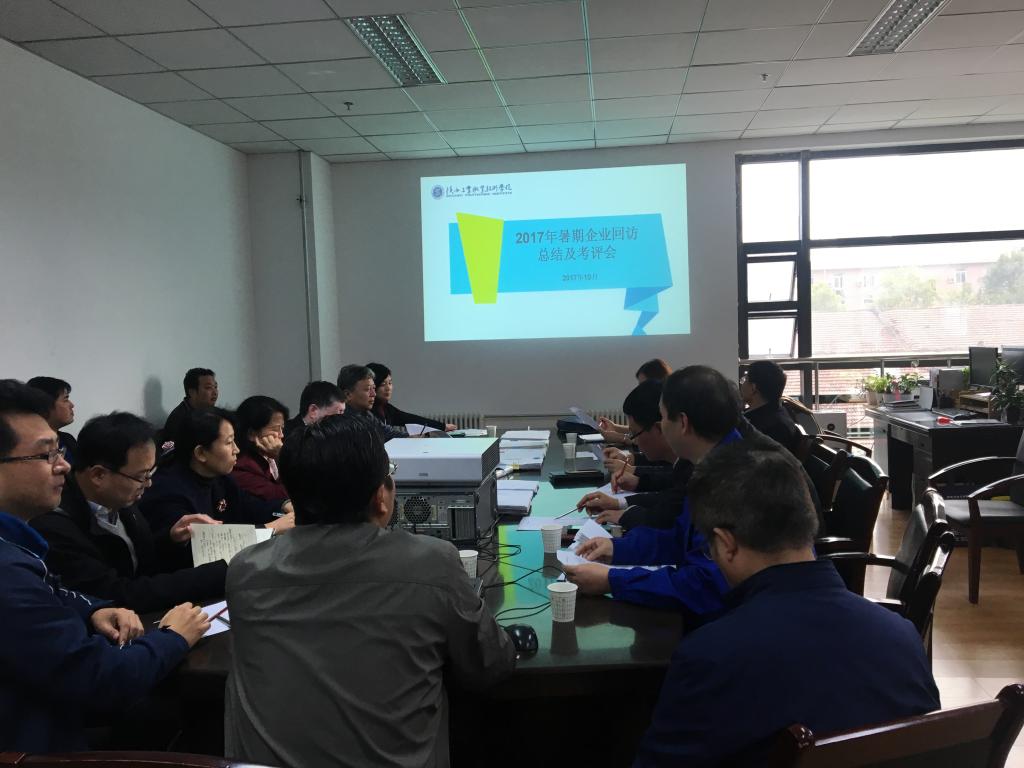 10月19日下午,我院2017年暑期企业调研总结交流及考评会在精艺楼举行,各二级学院党总支书记、学工办主任、校企合作处全体人员参加了会议。宣传部、教务处、学生处、团委、思政部、校企处相关人员组成评审组,会议由校企处处长卢文澈主持。