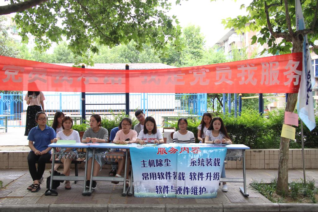 为庆祝建党96周年,持续推进“两学一做”学习教育常态化制度化,6月26日,信息工程学院学生工作党支部在社区开展了以“我是党员我承诺,我是党员我服务”为主题的电脑义务维修活动,20余名学生党员参与活动。